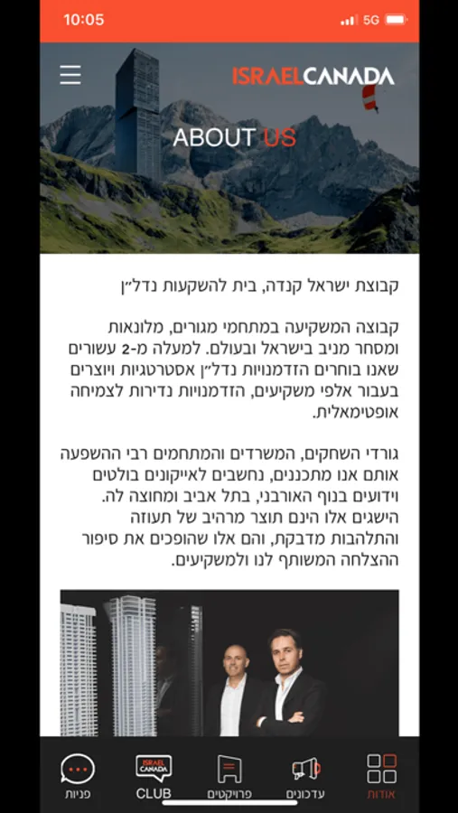 אפליקציית "ישראל קנדה" עם הפנים למשקיעים.