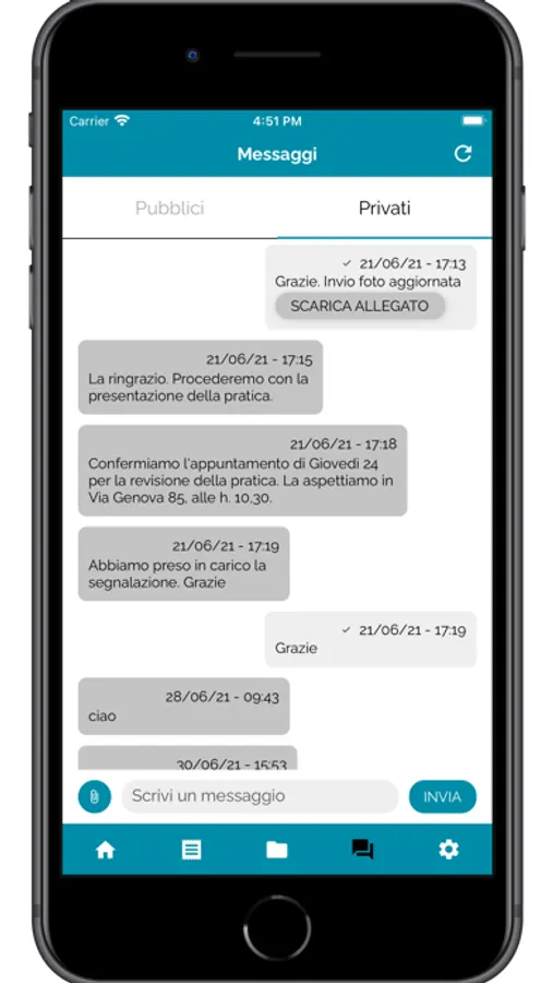 - invio/ricezione di messaggi privati al singolo cliente o invio messaggi pubblici con notifiche push e via mail;