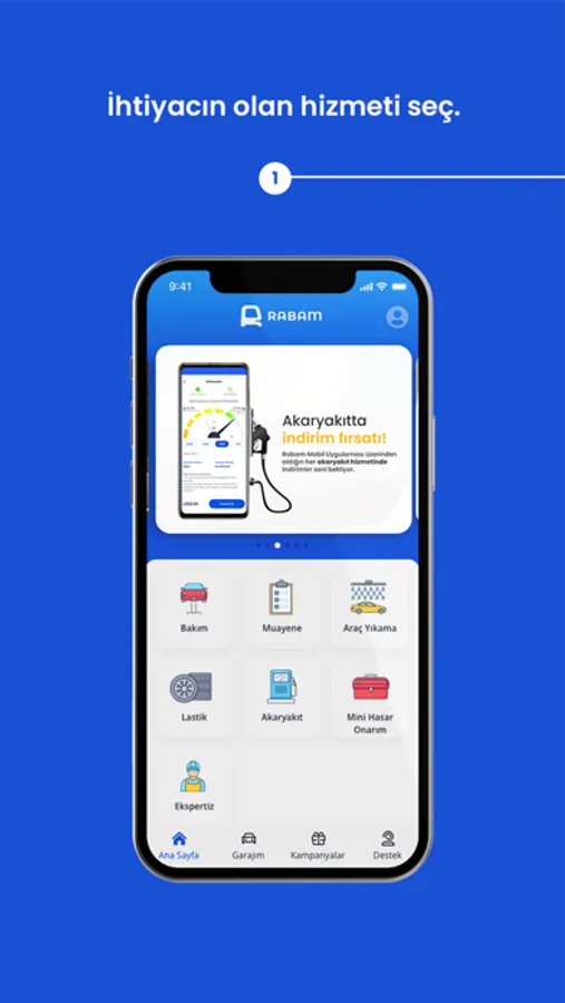 Rabam ile oturduğunuz yerden aracınızın tüm ihtiyaçlarını planlayabilir ve takip edebilirsiniz. Zamanın kıymetini biliyoruz ve hayatınızı kolaylaştırıyoruz. Siz günlük işlerinize devam ederken aracınızın tüm işlemleri ile biz ilgileniyoruz. Sizin aracınız, bizim aracımız ve keyifli bir sürüş deneyimi yaşamanız için her geçen gün kendimizi geliştirmeye devam ediyoruz. Araç ihtiyaçlarınızı karşılamak için artık evden çıkmanıza gerek yok, biz varız.