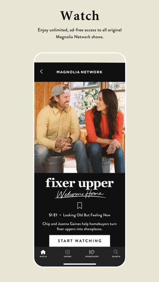 The Magnolia app is a first-of-its-kind, immersive digital home for all things Magnolia. Watch all original Magnolia Network shows and exclusive iconic series—all curated by Chip & Joanna Gaines—with a discovery+ subscription, shop curated product lines, plan a trip to Waco, and gain access to exclusive members-only benefits and expert-led Workshops when you sign up for a free Magnolia Perks account.
