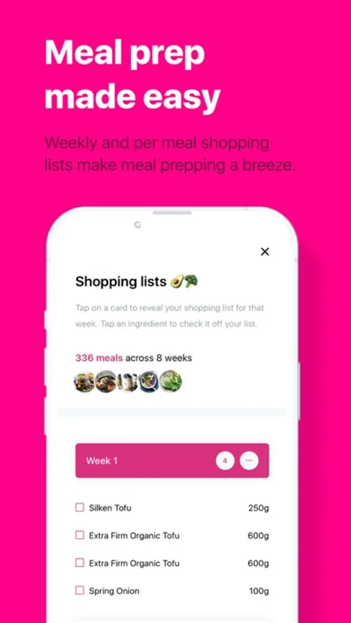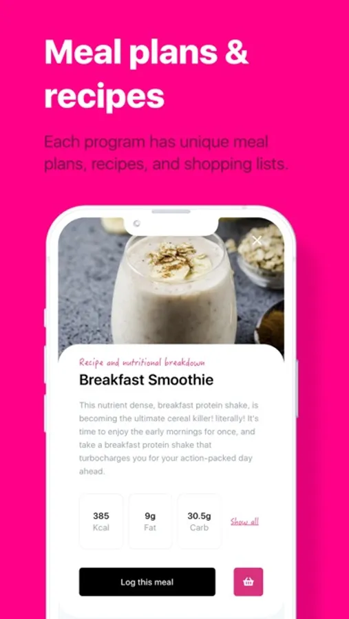 All our programs come with meal plans. We've made meal prep and logging easy with meals that include ingredients, methods and shopping lists.