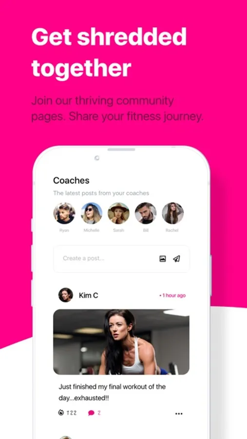 Join our thriving community. Every program has a dedicated in-app community page. Like, share and grow together on the fitness journeys and receive exclusive community posts from our coaches.