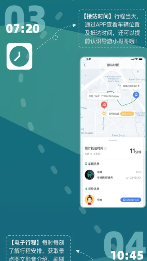 To provide mobile clients travel services for client in destination, including travel itinerary, tour bus GPS location, voice guide, etc