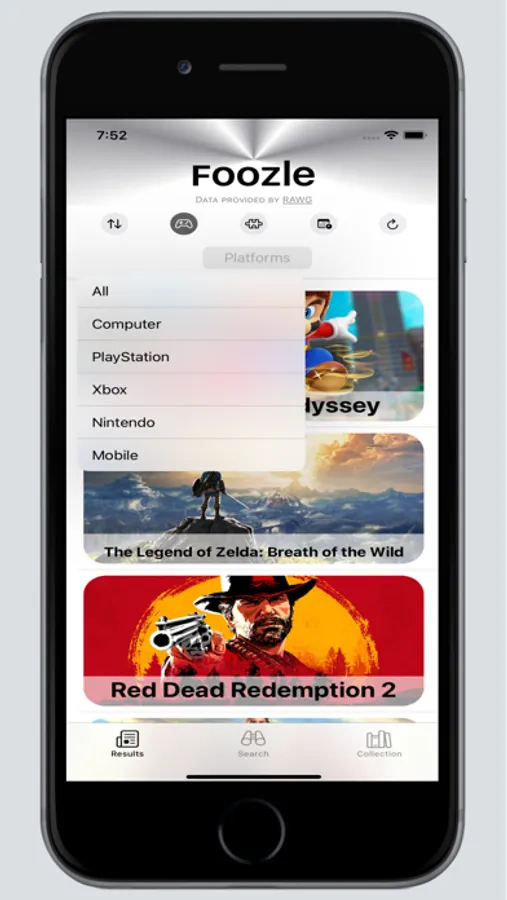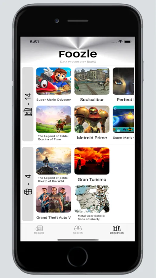 Foozle! utilizes the information in the RAWG database which allows you to be able to filter by your favorite platform, your preferred gaming genre, and even narrow down your search to a specific time period! Additionally, Foozle! allows you to keep track of all the games you own in one place while also allowing you to mark games that you don't own (but will soon!) and place them in your "Wish List" area so that you never forget about them!
