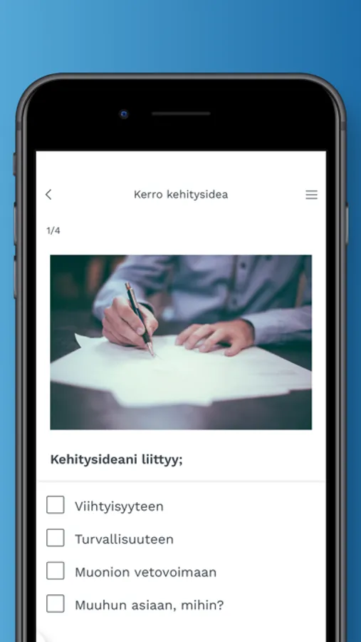 Sovelluksen käyttö on helppoa, sillä pääset liikkumaan pää- ja alavalikoissa vasemmassa yläkulmassa olevan tai puhelimen oman nuolinäppäimen avulla aina takaisin.