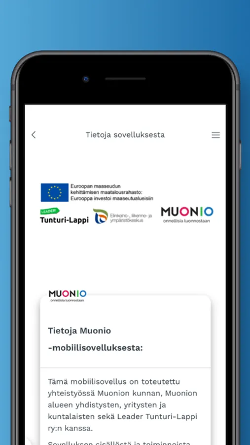 Muonio -mobiilisovellusta tullaan päivittämään jatkossa siten, että saat sen kautta aina ajankohtaiset tiedot ja uudet toiminnot käyttöösi!