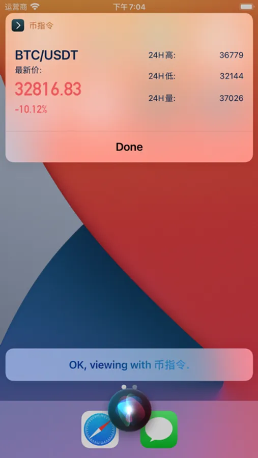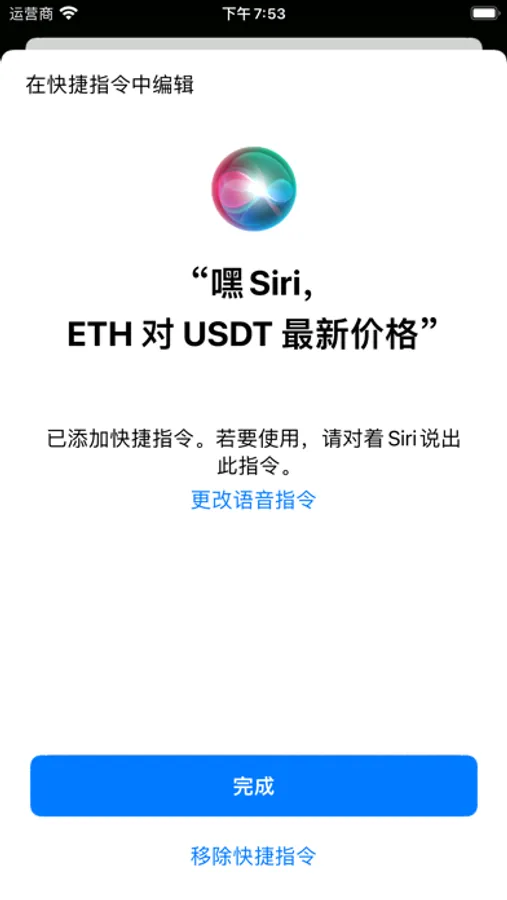 1、支持快捷指令(SIRI)查看数字货币的价格行情.