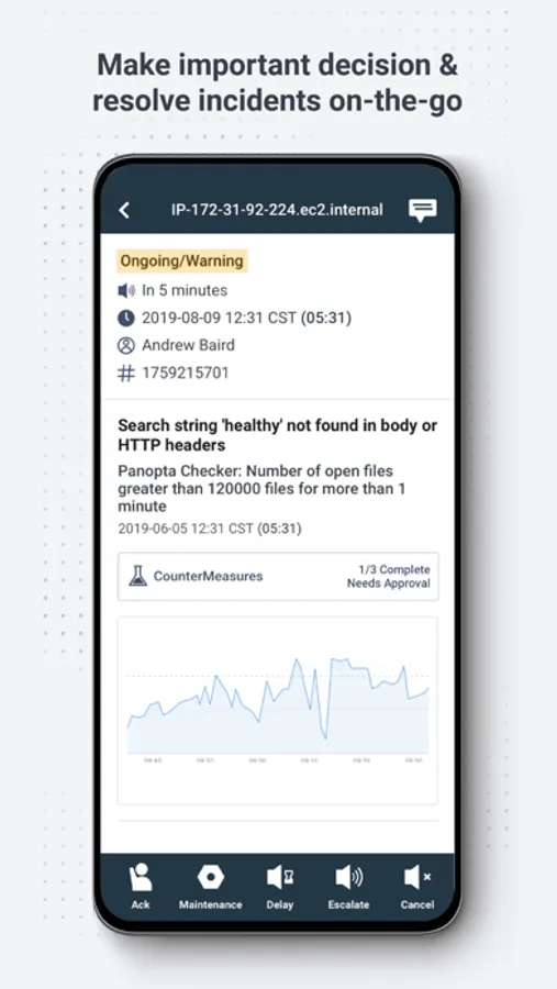 The FortiMonitor mobile application allows you to get full insight into your infrastructure’s status no matter where you are. You can receive notifications whenever an outage or warning is triggered, put your servers into maintenance, and get quick access to the performance data for all of your infrastructure.