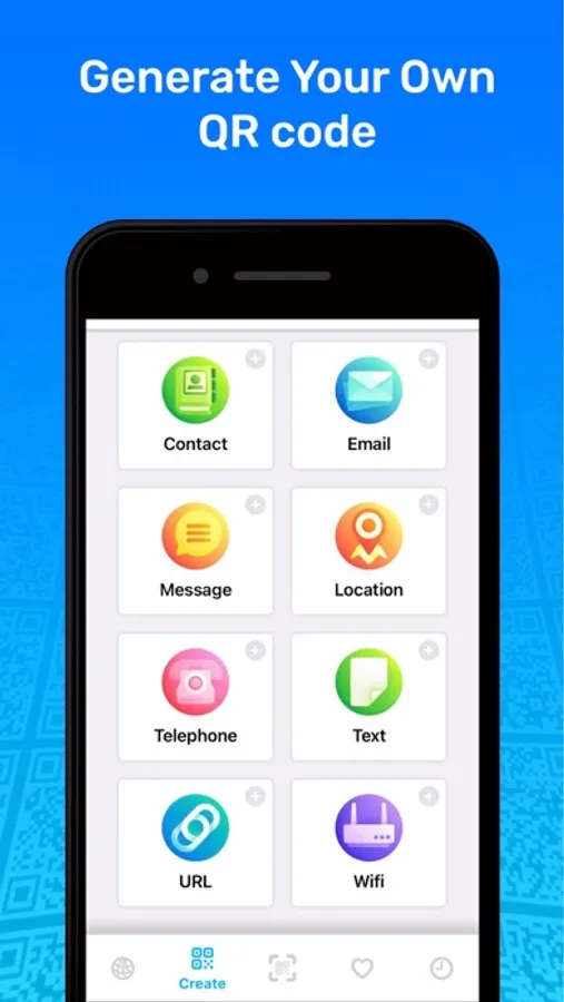 That's not all. With QR Scanner, you can generate your own QR code or barcode. QR Scanner allows you to encrypt personal information, create codes for messages, wifi, phone numbers, location, or create lovely messages and share with relatives and friends.