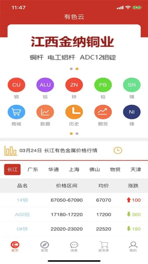 有色云聚金属行情价格、金属资讯、历史价格、走势图、商城、商机、人才、展会、社区、期货等金属行业综合平台、为有色金属企业价格结算、行业分析、品牌宣传、 商机发布、人才招聘、商城交易的不可分割的重要平台。平台还提供线上支付,仓储、物流及金融等全产业链解决方案,为用户拓宽销售渠道,从而获取更多业务订单。有色云服务100万家企业,每天在线存量商机约100万条。