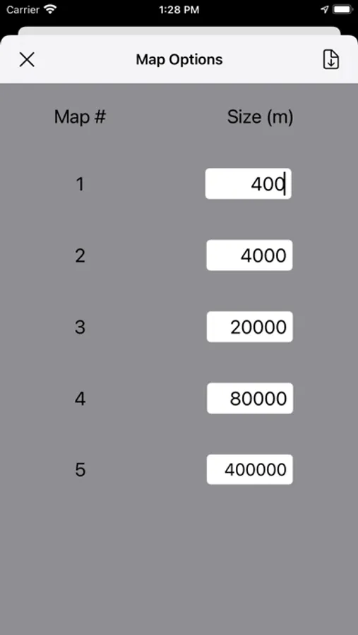 Create five scaled maps available for offline use. You can search for a location or manually move the map. The offline map is created at multiple scales relative where the map is centered. This offline map can then be used without relying on wifi or cellular service. The scales are modifiable by the user.