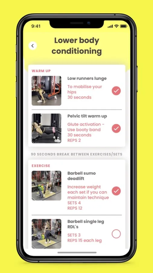 Check off your exercises each day you train. Katie Parsons can watch your progress and offer tips or advice whenever you’re struggling or need something more challenging!