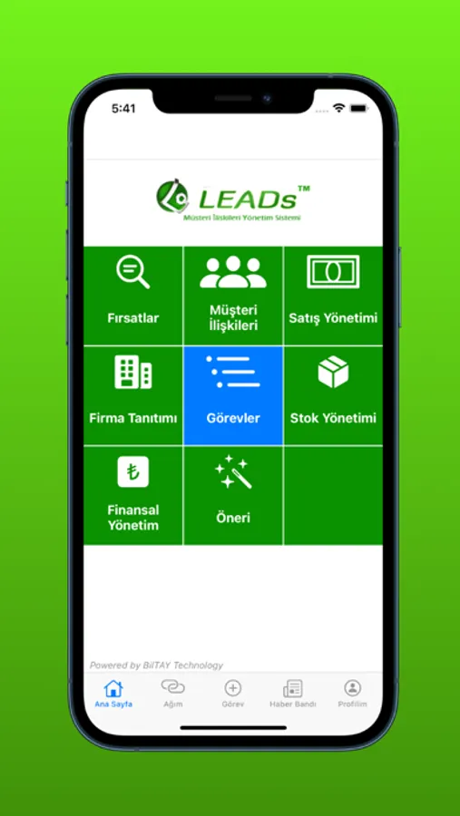 Alınan bir siparişin hızlı bir şekilde sorumlu kişilere aktarılması için geliştirilen uygulamadır. LEADs ile potansiyel müşteri tanımlayabilir, teklif oluşturabilir, müşteri tanımlayabilir ve sipariş girebilirsiniz. Müşteri kontaklarını rehbere ekleyebilir, QR kod ile kartvizitteki kontağı otomatik olarak sisteme aktarabilirsiniz. Diğer çalışma arkadaşlarınıza konular ile ilgili görev açabilir, ve siz müşterinizde iken firmanızdaki olaylardan haber akışı ile bilgi sahibi olabilirsiniz. Firma tanıtımı ile ilgili medya dosyalarını görüntüleyebilirsiniz.