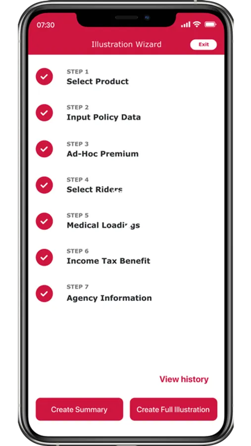 The app provides a summary mode to review the cash-value generated, and a pdf view for full illustration as per the SECP format.