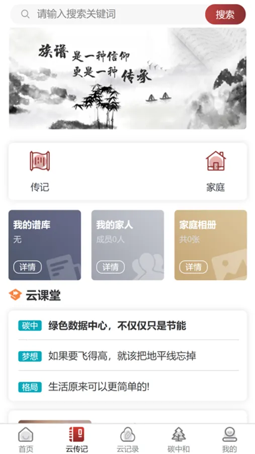 云传记就是传承——个人传记、族谱传承、家族记录,中国传统文化挖掘,打造代表中国家族精神传承一款综合性家庭服务APP,其中囊获了云传记、云祈福、云记录、精神文化、家庭商城等功能,最大程度的满足的了对中华传统文化以及精神传承的需求。’