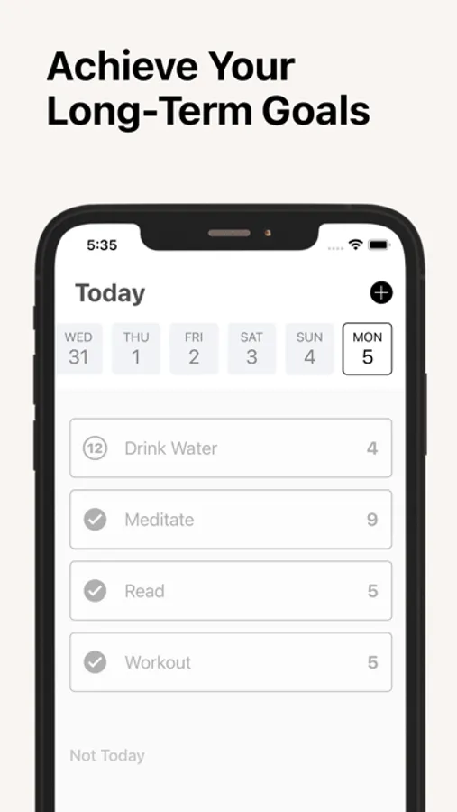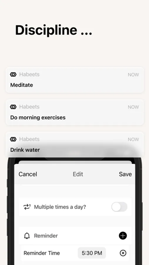 Go mind-free all day setting reminders for your habits. Set up an alarm for when you need to do something important like drink water or meditate. You'll never miss a chance to keep moving forward.