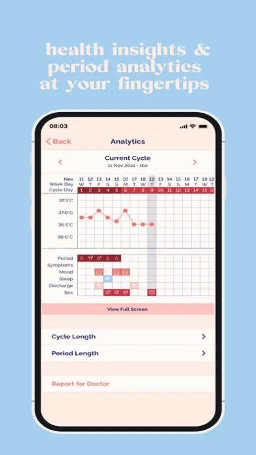 You can easily download information about your cycle and symptoms into a single PDF to share with your doctor.