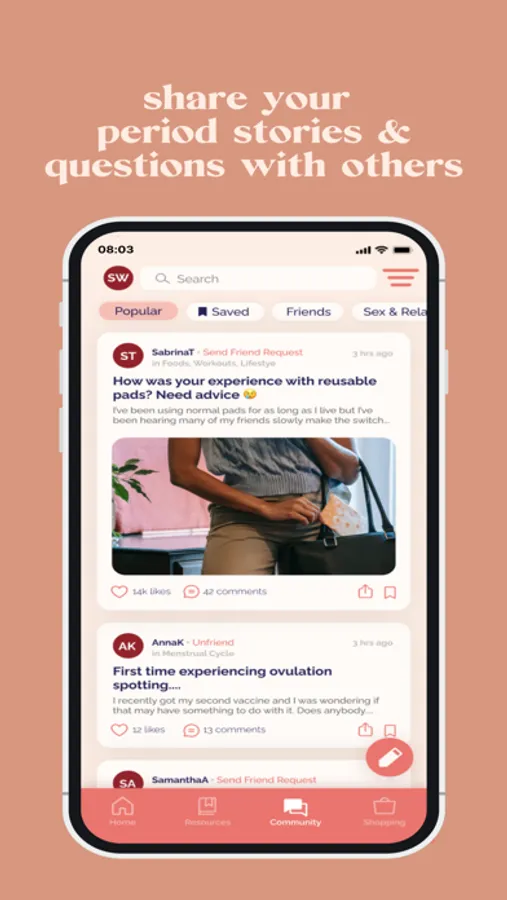 Send friend requests to your friends and share with each other about your respective menstrual cycles.