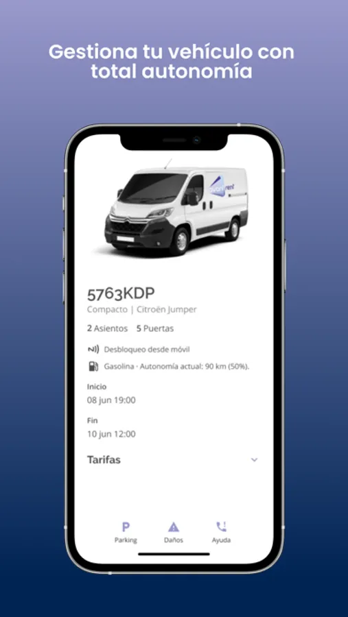 Con la app vas a poder contratar el servicio de forma inmediata o incluso reservarlo con antelación si ya prevés necesitar una de las furgonetas de AvantRent.
