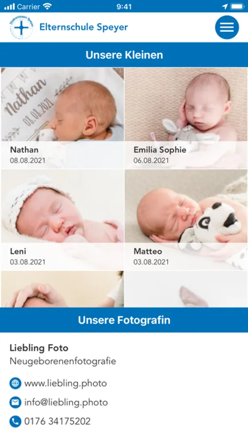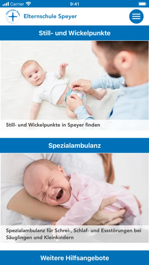 Bitte beachten Sie: Die App stellt allgemeine Informationen zu den Angeboten der Elternschule Speyer zur Verfügung. Sie ersetzt keinen Arztbesuch und keine Vorsorgeuntersuchung bei einem Arzt oder einer Hebamme.