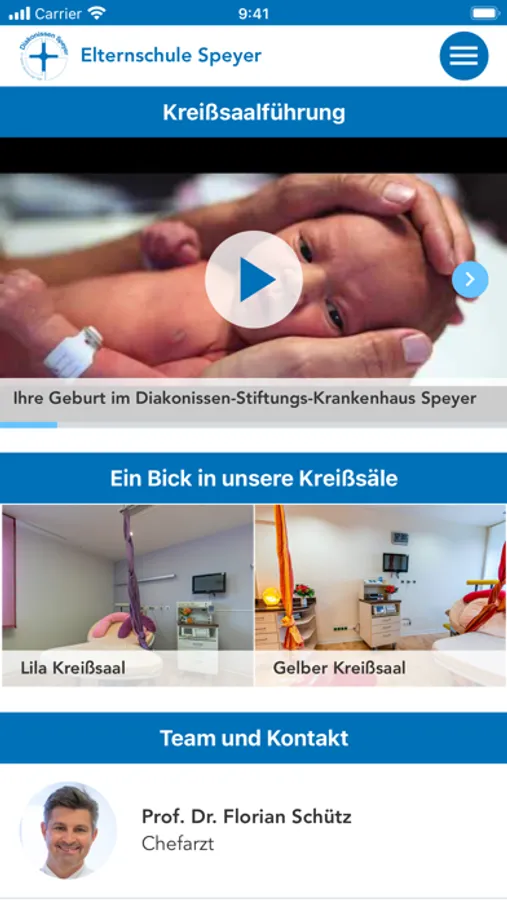 Neben unserem umfassenden Kursangebot lernen Sie in der App auch die Geburtshilfe am Diakonissen-Stiftungs-Krankenhaus Speyer kennen. Mit Videos, 360-Grad-Rundgängen durch unsere Kreißsäle und vielen weiteren Informationen können Sie sich selbst ein Bild von unserer Betreuung vor, während und nach der Geburt machen.