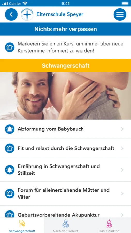 Die Zeit rund um die Geburt Ihres Kindes ist eine Zeit großer Vorfreude, aber auch eine Zeit, in der Sie viele Fragen beschäftigen. Mit der App der Elternschule Speyer und unserem Kursangebot unterstützen wir Sie in der Schwangerschaft, während und nach der Geburt Ihres Kindes.