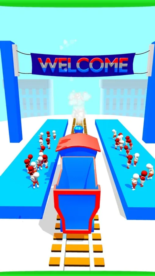 The train is coming, you must line up the rails immediately. You can collect the rails by swiping up and down.