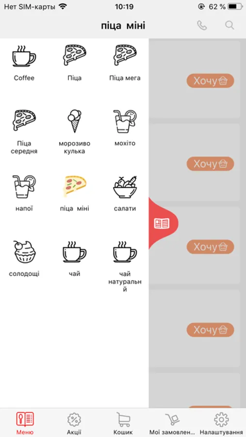 • самостійно замовити страви з меню: