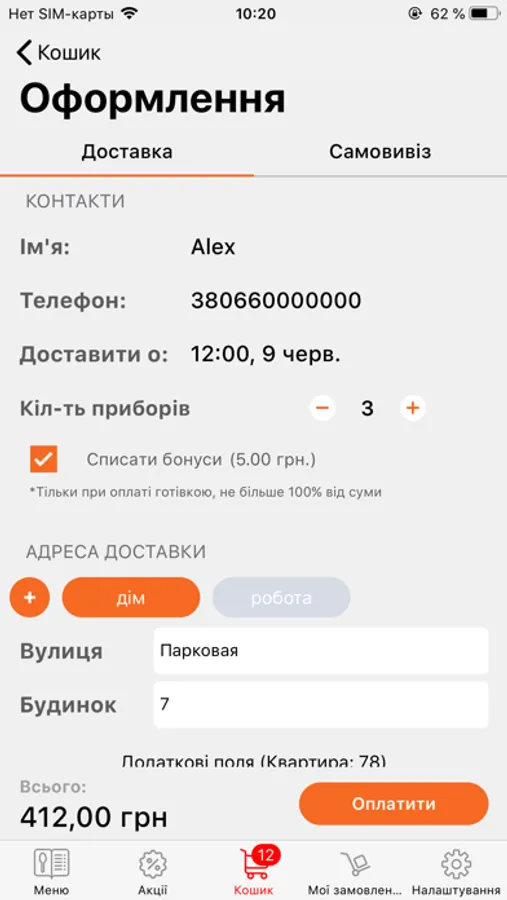 • встановити бажаний час доставки замовлення за вказаною адресою;