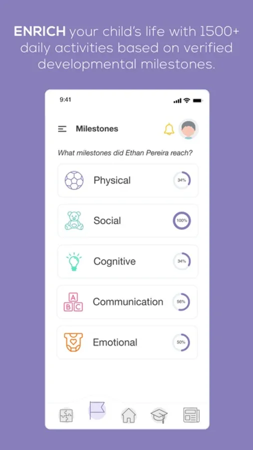 - ENRICH your child’s life with daily recommended activities based on verified developmental milestones.