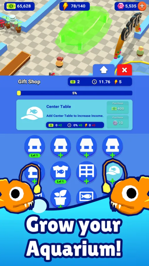 Upgrade your gift shop by adding new sale items or improving the existing ones. You can also add other exhibits rooms to host other species such as otters, penguins or lobsters. Your customers will appreciate it and will spend more money!