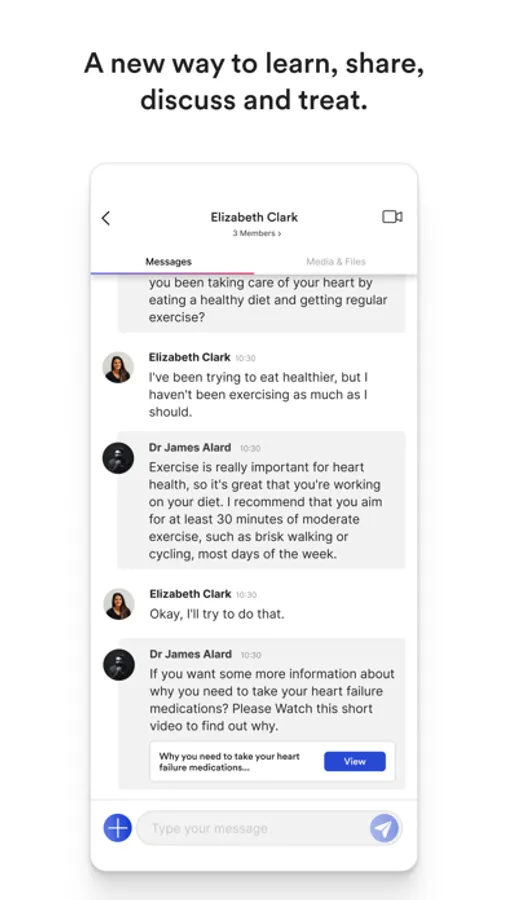 Our mobile and web app enables health professionals to connect and collaborate in a secure and compliant way. The App enables messaging, file-sharing, video meetings and live-streamed events in the same place - with a custom search engine built for medical users.