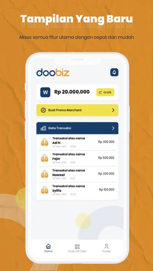 doobiz adalah sebuah aplikasi Financial Technology (fintech) yang hadir sebagai solusi transaksi secara digital (non-tunai) yang diperuntukan untuk para pelaku bisnis. Doobiz memberikan kemudahan para pemilik bisnis untuk melihat detail transaksi serta akses Scan QR yang hadir untuk mempercepat transaksi dengan para pelanggan.