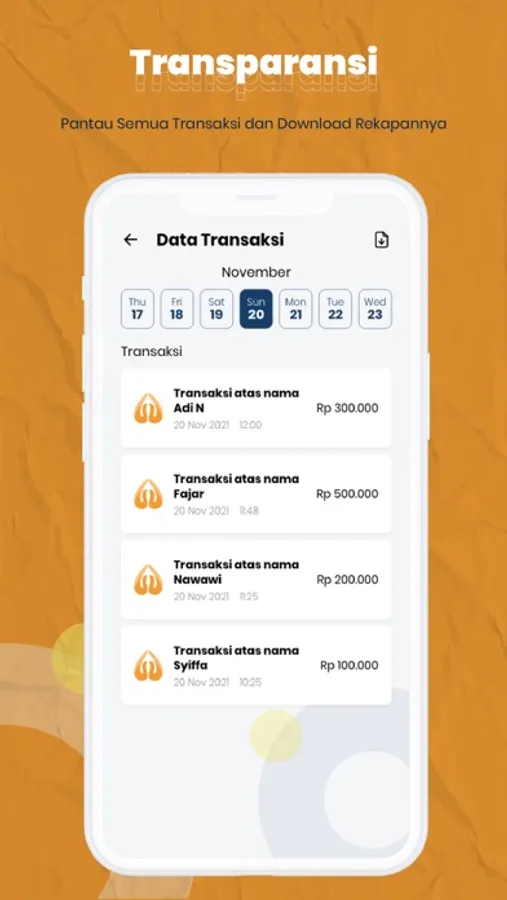 TRANSACTION HISTORY – Semua detil transaksi dapat di akses mudah hanya sekali klik tanggal