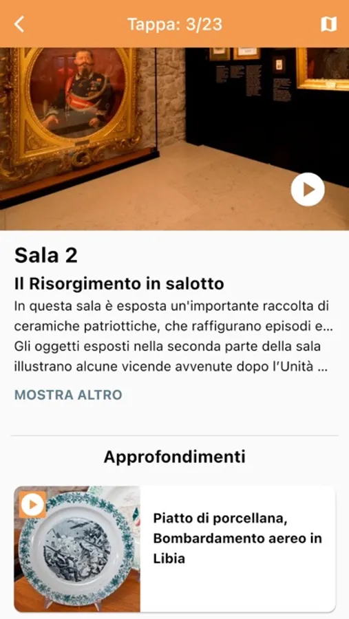 Ciascun punto del percorso può offrire degli approfondimenti che permetterà di scoprire dettagli particolari e sorprendenti della collezione, e in terzo luogo, per una serie di opere potrà scegliere di ascoltare una spiegazione aggiuntiva fornita da esperti o da attori.