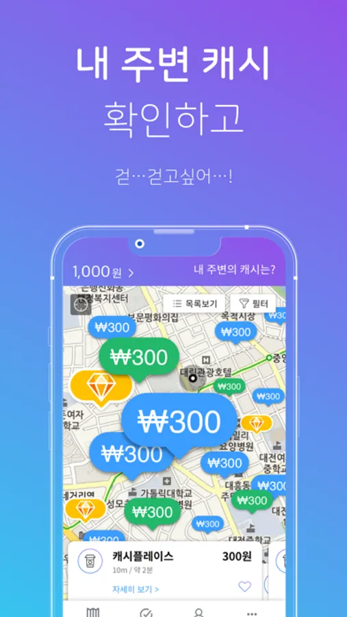 지도에 있는 매장 따라 걸으며 적립 받다 보면 다이어트는 덤!