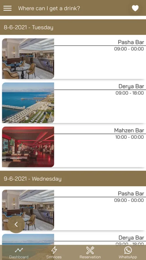 Şu an otelde hangi aktivitenin olduğunu ve hangi restoranların hizmet verdiğini uygulama üzerinden kontrol edebilirsiniz.