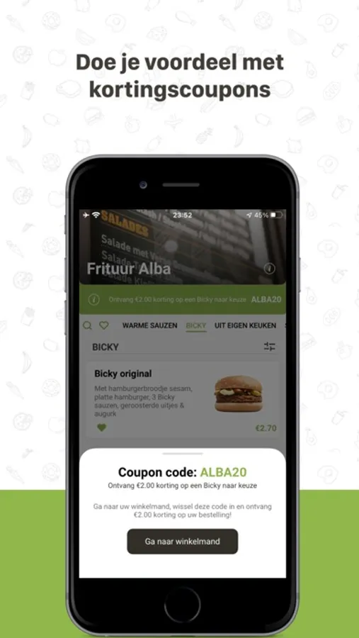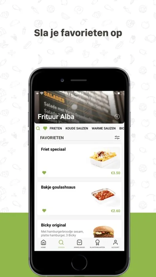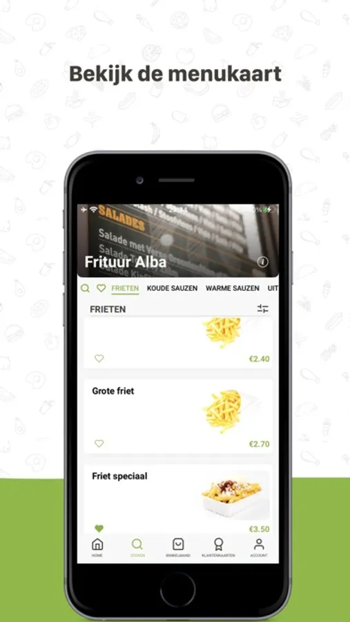 Bestel in een handomdraai een lekker pak friet, smakelijke burger, broodje of salade met de Frituur Alba app.
