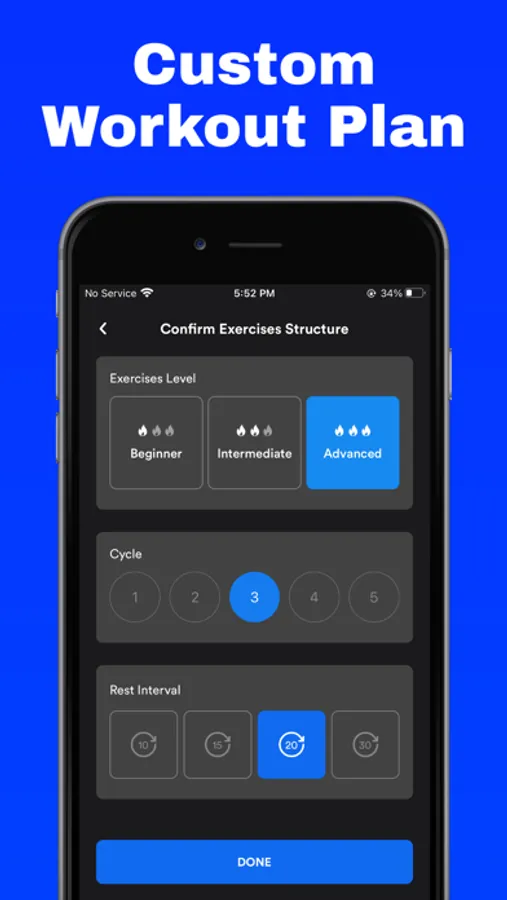 Make custom plans by mixing exercises to suit your needs. Add any exercises to the list and customize rest intervals and workout cycles to achieve your desired fitness goal.