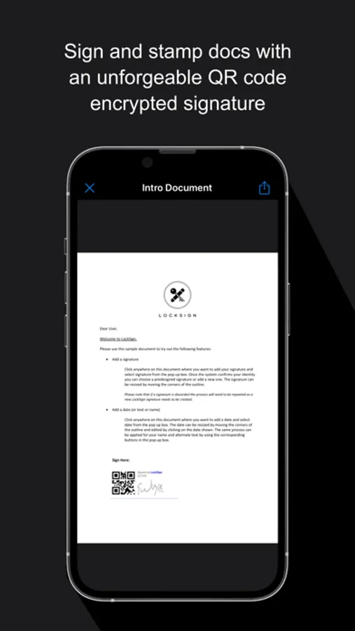 Securely and safely sign, initial, date, and timestamp documents, PDFs, files, photos — even items scanned with your camera. LockSign creates a verifiable electronic signature that is unique to each document, signature, and signing.