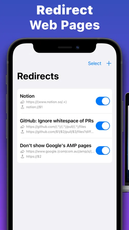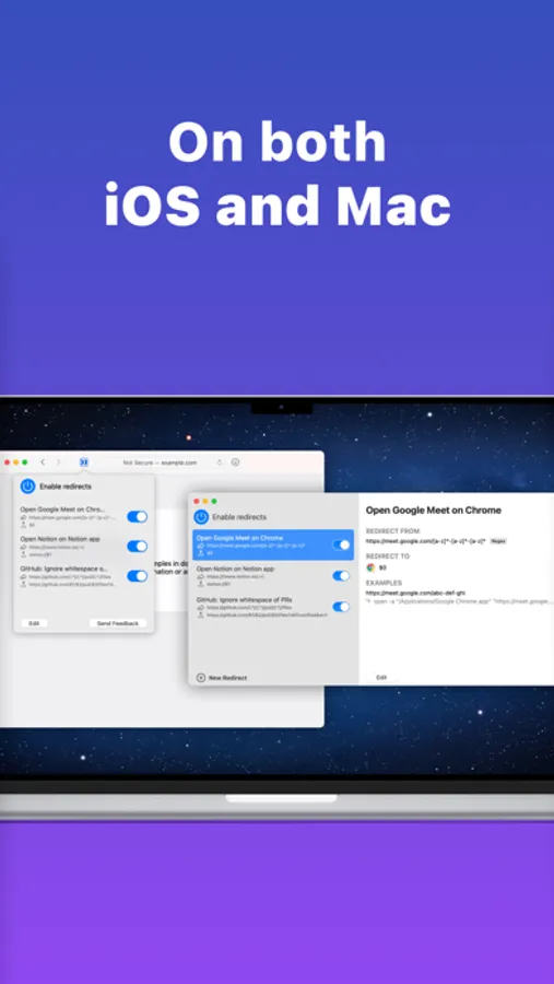 ・ Sync redirect settings with your other Mac, iPhone and iPad through iCloud