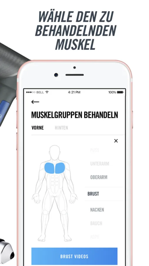 Einfach auf den zu behandelnden Muskel klicken und Experten-Videos zur Anwendung erhalten.