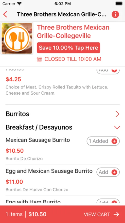 1. Get the Three Brothers Mexican Grill’s Online Ordering app and conveniently order from anywhere on your iPhone.