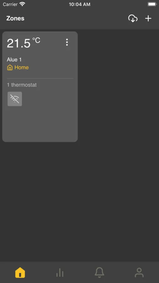 Multiple thermostats can be controlled from the application. Thermostats can be grouped into zones enabling common setpoint & mode selection for several thermostats. Thermostat can be also placed into custom control mode to override zone settings.