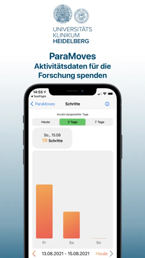 Ganz egal, ob für den schnellen Überblick oder detaillierte Informationen. Mit den Anzeigemodi von ParaMoves haben Sie die erfassten Daten zur körperlichen Aktivität immer im Blick und das auch rückwirkend für den gesamten Zeitraum Ihrer Teilnahme.