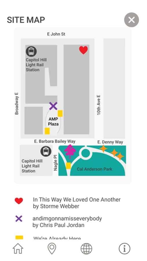 The AMP App is a companion app for The AMP: AIDS Memorial Pathway in Seattle, WA. The app enables users to access information, history and resources about The AMP, the on-site artworks, the AIDS epidemic, and the diverse community responses to the crisis. Using public art and technology, it creates a place to share stories and is a call to action to end HIV/AIDS, stigma, and discrimination.
