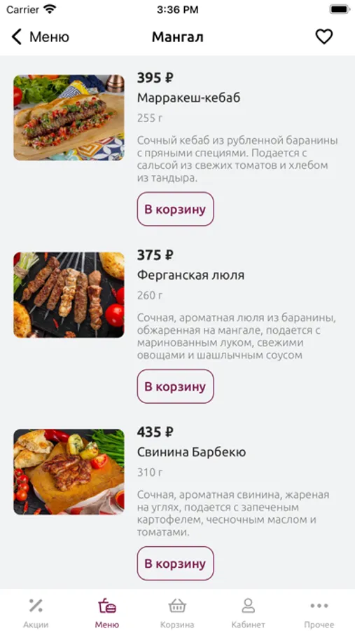 мясо на мангале в сопровождении привычных салатов или картофеля;