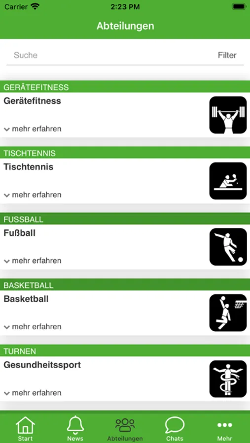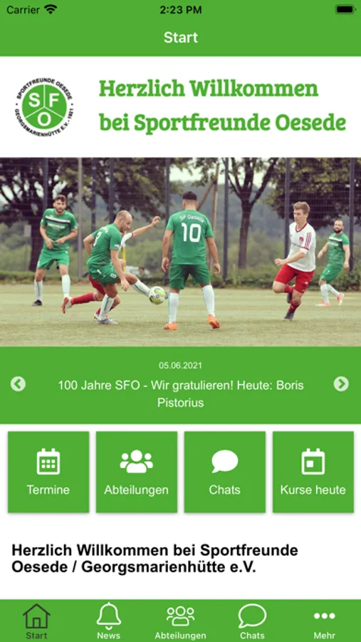 Die App bietet Informationen aus dem größten Sportverein der Stadt Georgsmarienhütte – den Sportfreunden Oesede. Hier findet Ihr Infos zu unserem vielfältigen und abwechslungsreichen Sportangebot für jedermann. Lasst Euch über Neuigkeiten durch Push-Nachrichten informieren, übertragt wichtige Termine aus der App direkt in Euren Kalender und meldet Euch für Kurse an. Gebt uns Feedback über unser Angebot und chattet untereinander in Euren Gruppen.
