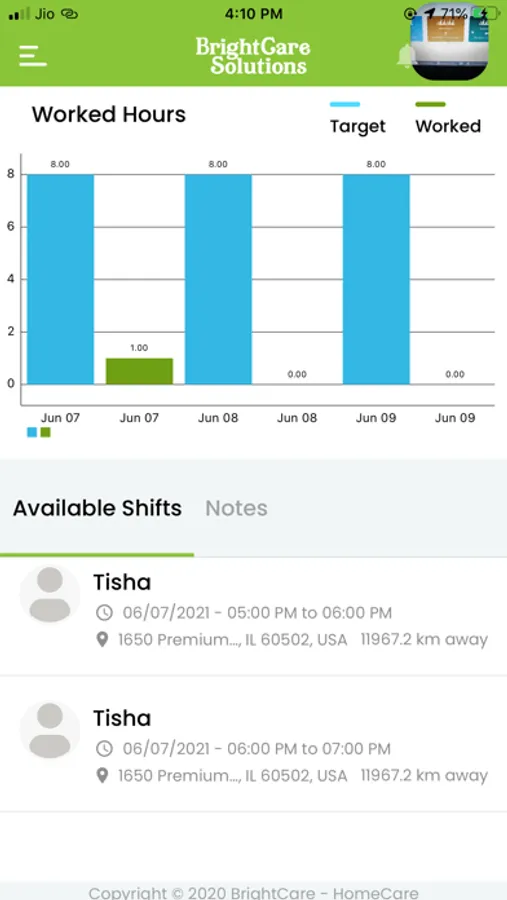 -Client profile: includes name, address, schedule of care, care plan, allergies, preferences.