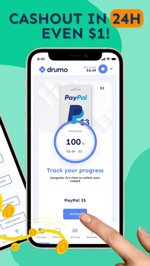 Make money on the go by sharing your opinion in fun surveys, playing games and completing offers. Redeem your earnings for PayPal cash or Gift Cards and cash out in 24 hours or less.